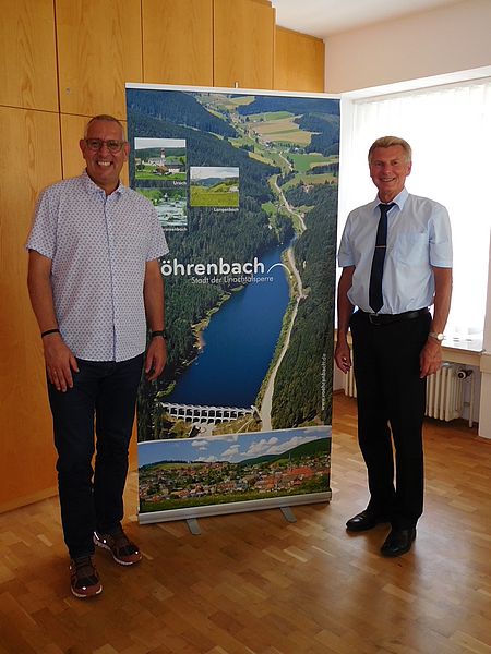 „Fördermöglichkeiten, z.B. durch das Stadtsanierungsprogramm sind insbesondere für kleinere Kommunen von hoher Bedeutung“, so der Bürgermeister. In dem Zusammenhang sprach er die gelungenen Sanierungen der Villinger- und der Krankenhausstraße an. Auch die derzeitige Sanierung der Josef-Hebting-Schule und die geplante Rathaussanierung wären ohne eine städtebauliche Förderung aus finanziellen Gründen nicht möglich. Als weitere zukunftsweisende Projekte nannte er die interkommunal geplante Erschließung des Linachtals und die Erschließung eines neuen Baugebietes Kosbach II. „Neue Baugebiete“ war gleichzeitig das Stichwort, um mit Thomas Bleile über die Hochwasserproblematik ins Gespräch zu kommen. Aufgrund der vergangenen Unwetterkatastrophen mit vielen Todesopfern seien alle Kommunen herausgefordert, ganz neu intensiv über Hochwasser- und Katastrophenschutz nachzudenken. Auch hier hätte sich die Politik zu früh in Sicherheit gewogen mit der Folge, dass viele Sirenen zu früh abgebaut wurden. Im Rahmen der Hochwasserkatastrophe habe sich nun herausgestellt, dass neben WarnApps, Radio udgl. Sirenen durchaus wichtig seien, um die Bevölkerung rechtzeitig zu warnen.