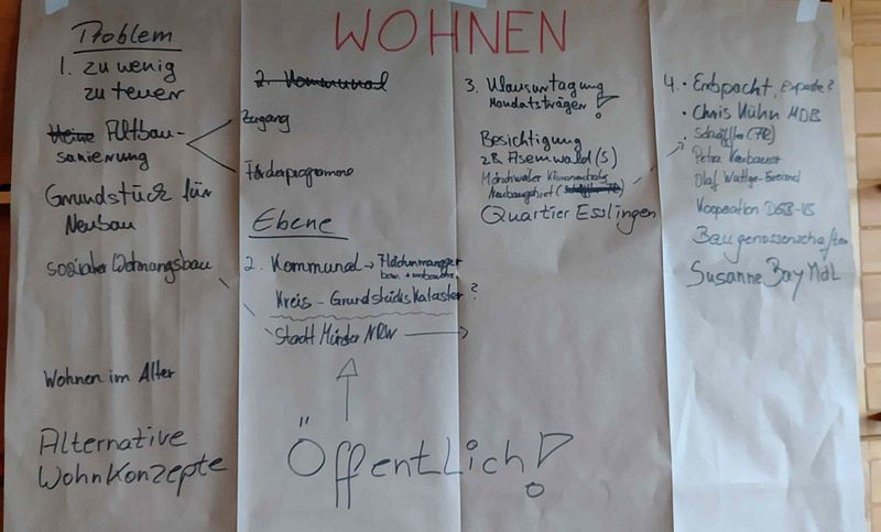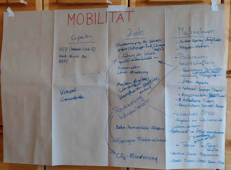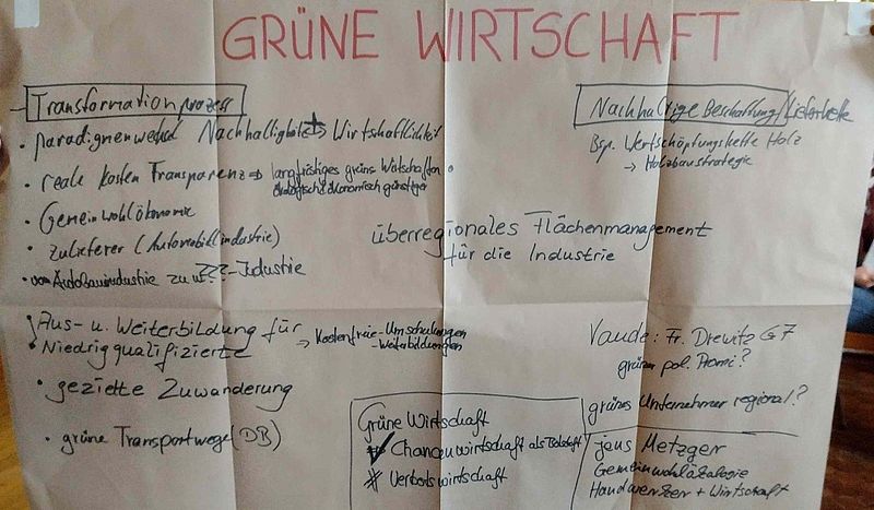 Mobilität, Wohnen, Bildung, Energiewende, Grüne Wirtschaft, Vielfalt. In Kleingruppen wurden