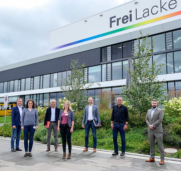 Die beiden Geschäftsführer Dr. Rainer Frei und Hans-Peter Frei sowie Prokurist Roland Bäurer zeigten die Langfriststrategie und die Kernkompetenzen des Unternehmens auf, die in der Entwicklung von Systemlack-Lösungen liegen und weltweit zum Einsatz kommen. Über 600 Mitarbeitende ermöglichen das Angebot aller Lacktechnologien (Pulver-, Flüssig-, Elektrotauchlacke sowie Composites-Lösungen), die am Standort Döggingen produziert und vertrieben werden.