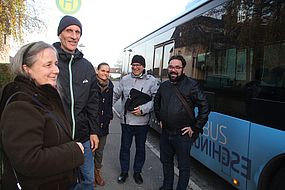 „Stadtbus“: Gemeinderätin Annie Bronner und Christian Kaiser (von links) führten MdB Chris Kühn (rechts) das Donaueschinger Stadtbuskonzept vor.