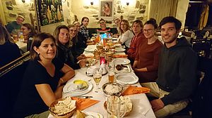 Es gibt ein kleines Vorspeisenbuffet, nur Getränke müssen selbst bezahlt werden!