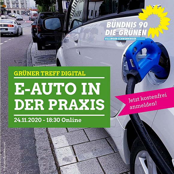 Der Ortsverband VS von BÜNDNIS 90 / DIE GRÜNEN lädt am 24.11.2020 um 18:30 Uhr zu einem Vortrags- und Diskussionsabend zum Thema Elektro-Mobilität in der Praxis ein. Die kostenlose Veranstaltung wird online durchgeführt und ist zugänglich für alle interessierten Bürgerinnen und Bürger.
