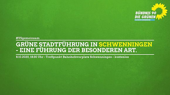 Der Ortsverband VS von BÜNDNIS 90 / DIE GRÜNEN lädt am 8.10.2020 zu einer kostenlosen Stadtführung der besonderen Art in Schwenningen ein. Im Fokus stehen neben der Stadtgeschichte auch grüne Themen.